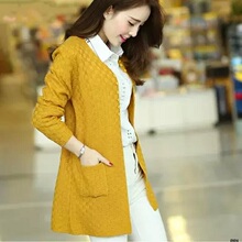 2017春秋新款女装韩版中长款百搭长袖针织衫披肩开衫外套大码毛衣