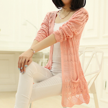 2017夏季女装薄款针织开衫女毛衣外搭外套中长款镂空防晒空调衫夏