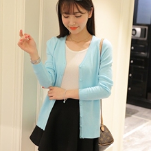 2017春秋装新款学院风学生毛衣纯色百搭短款薄针织衫开衫女外套潮