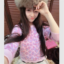 秋冬新款明星同款粉色豹纹毛衣套头针织衫套头