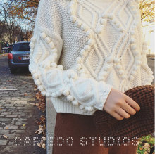 2015秋冬2016早春新款镂空钩花性感百搭蝙蝠袖球球毛衣针织女装