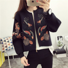 2016秋冬棒球服男友风宽松宽版民族风刺绣绣花针织开衫毛衣外套