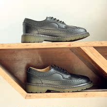 港系潮牌林弯弯新款男鞋复古简约真皮雕花系带休闲小皮鞋黑色皮鞋