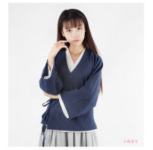 琉荒-2015新款春夏打底汉服改良百搭款长袖斜领系带女式衬衫上衣