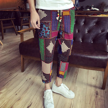 2017夏季男士九分裤休闲裤个性潮男小脚裤时尚花色9分裤男哈伦裤
