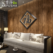 怀旧仿木纹木板中式复古壁纸 客餐厅店铺装修背景服装店工程墙纸