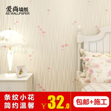 爱尚墙纸 线条纹简约田园小花无纺布壁纸 卧室温馨客厅电视背景