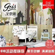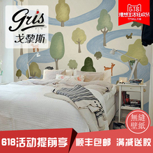 戈黎斯 北欧式手绘定制壁画无缝麋鹿林客厅卧室电视背景墙纸壁纸