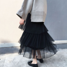 春季女装韩版甜美百搭高腰半身裙长裙学院风宽松百褶网纱蛋糕裙子