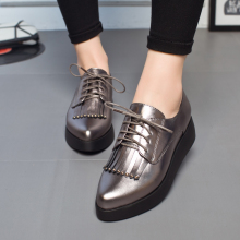 2017春季新款真皮英伦风厚底松糕鞋漆皮尖头皮鞋流苏内增高女鞋潮