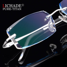 钻石切边眼镜 男款纯钛无框近视眼镜架 变色眼镜 配成品眼镜框N1