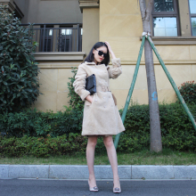 杨小妖2016新款美利奴澳洲进口收腰裙摆款羊羔毛皮毛一体女外套
