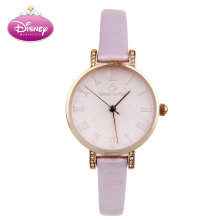 迪士尼正品 时尚潮流石英表女 真皮表带手表 女表简约镶钻学生表
