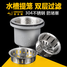 潜水艇厨房洗菜盆提笼水槽下水器304不锈钢提篮双槽配件双层过滤