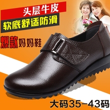 春秋牛皮中老年人妈妈鞋真皮平底单鞋皮鞋休闲鞋舒适软底中年女鞋