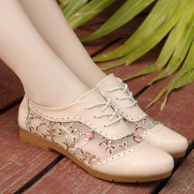 网面鞋子女夏季透气网鞋妈妈休闲鞋真皮中老年网眼鞋平底平跟单鞋