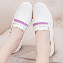 欣迎100真皮气垫护士鞋白色坡跟单鞋女夏季休闲小白鞋防滑工作鞋