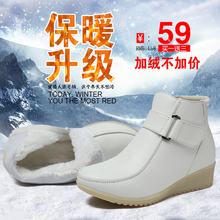 冬季护士鞋棉鞋白色冬天加绒坡跟牛筋底短靴棉靴女防滑侧拉链靴子