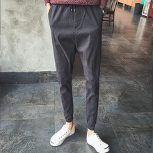 春秋季灯芯绒男裤小脚修身青年休闲裤大码束脚哈伦裤松紧腰裤子潮