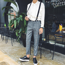 男生格子背带裤英伦时尚吊带裤秋天小脚哈伦锥形裤男士休闲裤潮流