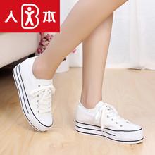 人本经典款厚底内增高帆布鞋女春 韩版学生低帮鞋 系带休闲松糕鞋
