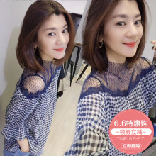 欧洲站2017春夏装欧货潮新款休闲韩版拼接网格蕾丝格子长袖衬衫女