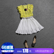 欧洲站套装女春夏装时尚潮2017新款T甜美镂空上衣气质薄百褶短裙