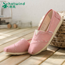 热风帆布鞋条纹女一脚套鞋便利女鞋2017年橡胶耐磨底单鞋H30W7109