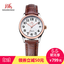 上海牌手表牛皮表带日历全自动机械女经典商务品质腕表情侣表X625