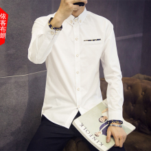 秋装男士碎花拼接长袖衬衫男加肥加大码胖子男装英伦绅士白色衬衣