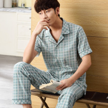 夏季男士睡衣短袖套装夏天男夏纯棉半袖中老年薄款开衫家居服男装