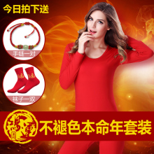 女士结婚大红色内衣本命年保暖内衣套装加绒加肥大码薄款秋衣秋裤