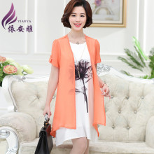 40-50岁中年妈妈装真两件套中老年夏装短袖雪纺连衣裙2017新款潮