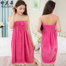 舒兰朵超细纤维浴巾 成人可穿浴巾女 蝴蝶结抹胸浴裙超强吸水浴衣