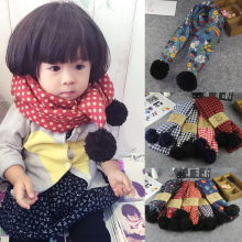 爆款可爱秋冬季儿童围巾加厚波点保暖围巾 格子围脖双球宝宝百搭