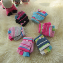 16冬季新款男女儿童宝宝翻盖两用五指半指分指 条纹保暖羊毛手套