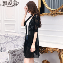 飘爱美2017夏大码女装雪纺开衫中长款纯色空调衫披肩蕾丝衫薄外套