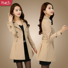 风衣女2016春装新款韩版泡泡袖双排扣大码风衣褶皱收腰中长款风衣