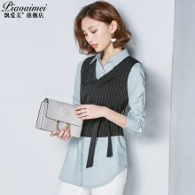 西装马甲套装女中长款2017春装新品显瘦马夹女长裤两件套名媛套装