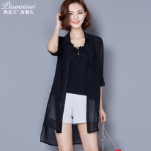 2017夏季新款大码女装雪纺开衫中长款纯色空调衫披肩蕾丝衫薄外套