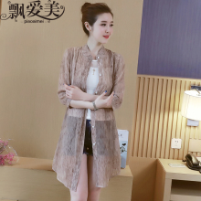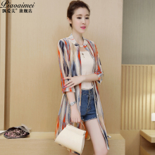 沙滩防晒衣女2017夏装雪纺印花开衫中长款百搭空调衫薄款披肩外套