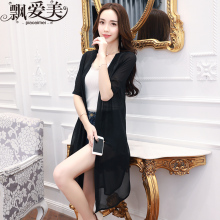 雪纺开衫夏中长款薄纱外套2017新品宽松显瘦百搭沙滩防晒衣披肩潮