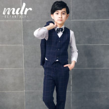 名朵儿花童礼服男童春钢琴表演六一演出服婚礼儿童格子马甲套装