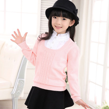女童春秋毛衣中大童套头针织衫2016新款衬衫领假两件外套线衫立领