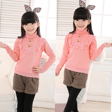 童装2016秋冬女童打底衫中大童套头毛衣圆领加厚针织衫纯棉秋冬款