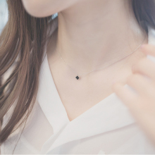韩国代购黑色迷你四叶草小吊坠极细短款锁骨链时尚项链女闺蜜礼物