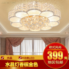 家用LED水晶灯具客厅灯圆形吸顶灯现代欧式大气S金卧室灯大厅灯