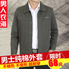 新款中老年男士全棉外套男装夹克衫爸爸装秋装中老年男式春秋夹克