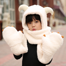 韩版亲子可爱羊角冬天男女童儿童围巾帽子手套三件套装一体护耳帽