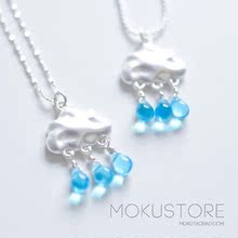 MokuStore●手工●清新 云朵+雨滴琉璃珠 锁骨链|项链[云端の泪]